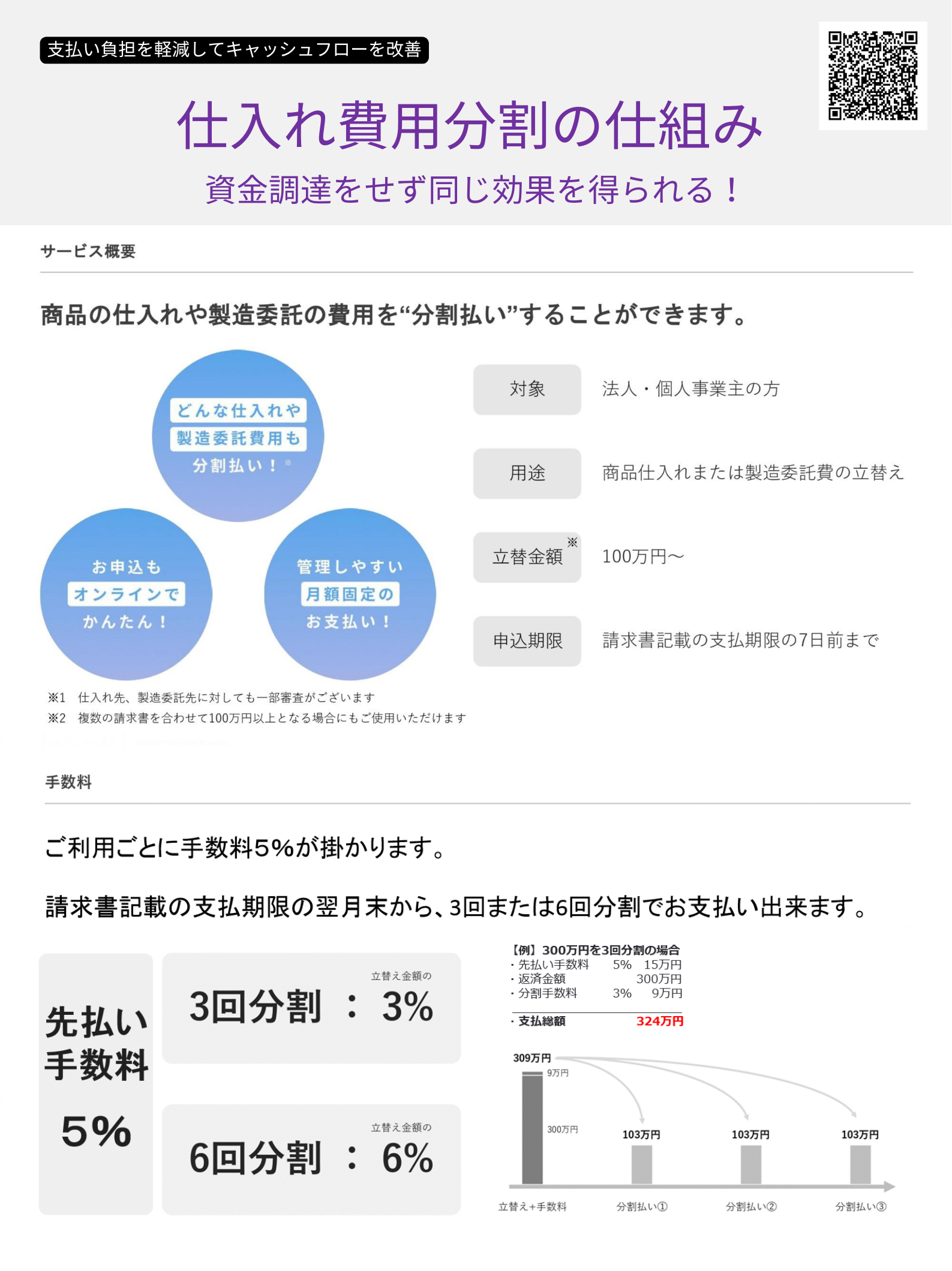 仕入れなど受けの請求を立替えてお支払い!返済は3回か6回の分割をお選び頂けます